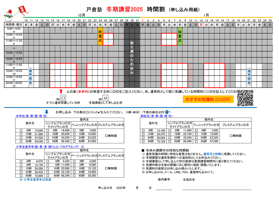 冬期講習のご案内